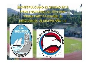 Nei primi minuti poche occasioni per entrambe le squadre e al 22' il Bogliasco si porta in vantaggio dopo una bella azione. Palla sulla trequarti a Riccardo Parodi che, con un tocco sotto di sinistro, lancia splendidamente in area Gabriele Eddiba, ottimo controllo dell'attaccante che all'altezza del dischetto, di destro, insacca alla sinistra del portiere. Nella ripresa l'Aldini pareggia al 18' su un calcio di rigore discutibile per fallo su Cataldo. Sul dischetto si presenta lo stesso numero 10 che realizza con un tiro preciso alla sinistra del portiere. Poco dopo è ancora Cataldo ad avere una bella occasione ma il suo tiro a giro è ben parato da Niccolò Scelti che devia in calcio d'angolo. Al 31' i milanesi si portano in vantaggio con Giuffrida, che fa un gran numero in area, forse in gioco pericoloso, si libera dell'avversario e di destro tira ad incrociare sul secondo palo.