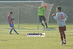 Lunedì mattina, ore 9, il primo test contro i padroni di casa. Freddo e nebbia ci accolgono al risveglio ed anche sul terreno di gioco. L'impatto non è dei migliori. Nei primi minuti, dopo il fischio d'inizio, la Goliardica rischia di prendere subito gol e poco dopo subisce lo svantaggio. La tensione dell'evento, il clima, il campo nuovo e chissà cos'altro, tanti sono i motivi per il brutto inizio. Ma piano piano la squadra si sveglia dal torpore, si rilassa mentalmente e comincia a giocare, soprattutto ad essere più presente sul campo. A metà del primo tempo il pareggio di Zaami, bellissimo pallonetto sull'uscita del portiere, è una scossa, fa capire a tutti che la gara è alla pari, sotto tutti i punti di vista. I ragazzi di mister Cipani cominciano a confezionare le loro azioni in velocità, ad un tocco, che quando riescono è sempre un bel vedere. Prima del riposo si vedono negare un rigore abbastanza netto: su punizione dal limite calciata da Cipani junior, un difensore in barriera alza i gomiti e colpisce la palla, il regolamento parla chiaro ma l'arbitro chiude un occhio, e forse due, e lascia proseguire. Le proteste si sprecano ma non cambiano certamente la decisione, rimane solo il dubbio grosso come una casa.